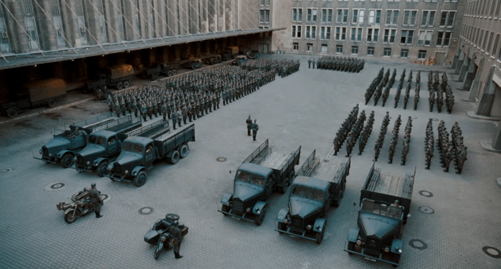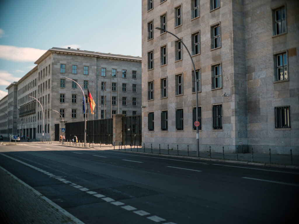 Среди локаций фильма выделяется здание Министерства авиации на Вильгельмштрассе – монументальный комплекс, построенный в 1935–1936 годах по проекту Эрнста Зейгебиля для Германна Геринга. В свое время это был крупнейший офисный комплекс Берлина: 2000 помещений, 56 тысяч квадратных метров, строгий фасад и ар-деко интерьеры отражали мощь Третьего рейха.